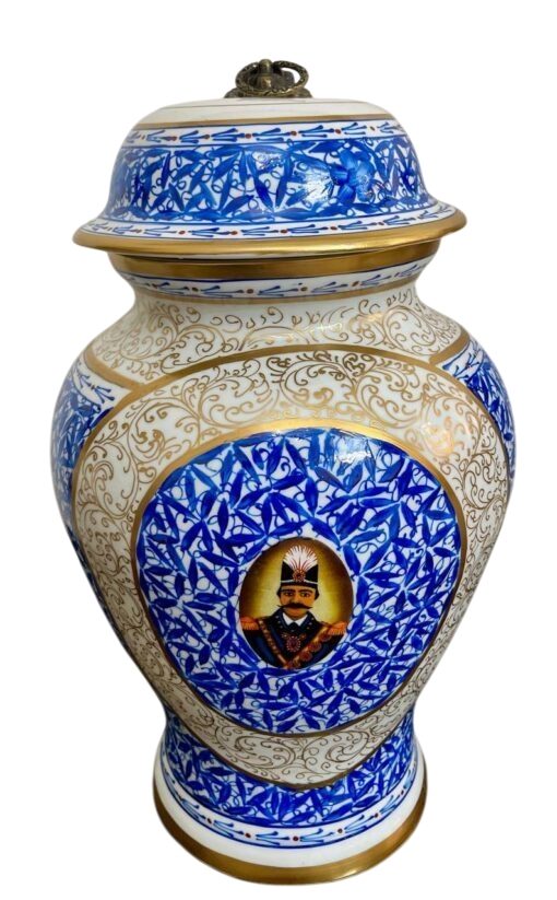 جینجرجار چینی قلم آبی طلاکوب بزرگ