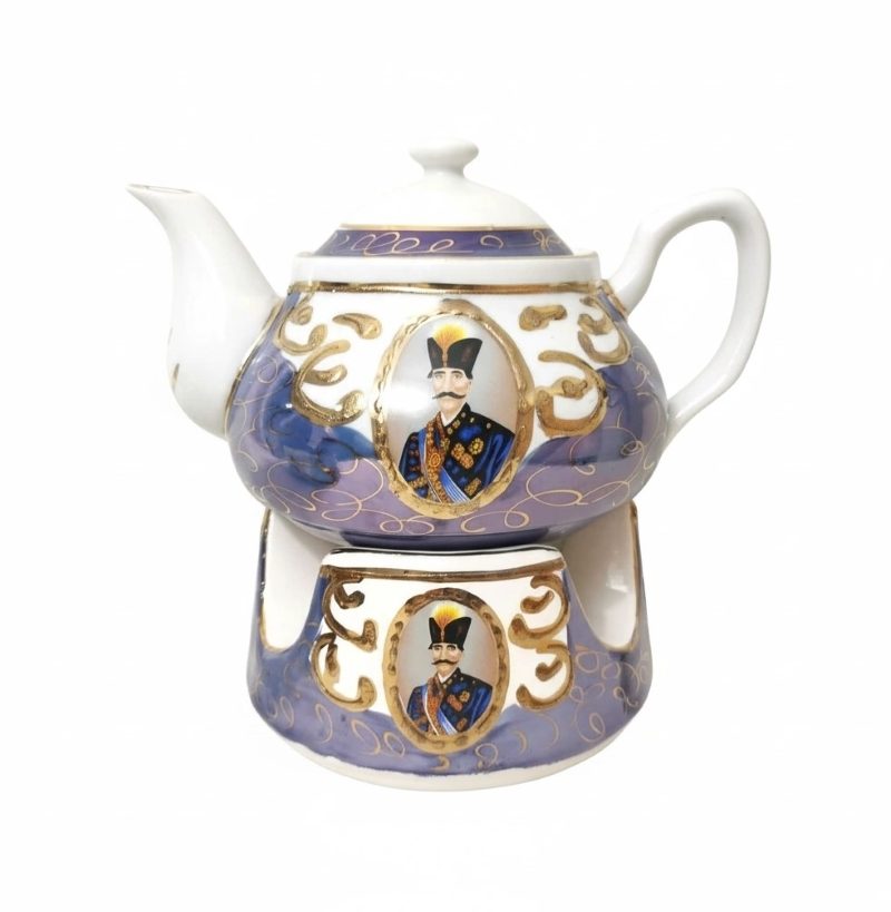 قوری و وارمر شاه عباسی سورمه ای طلاکوب